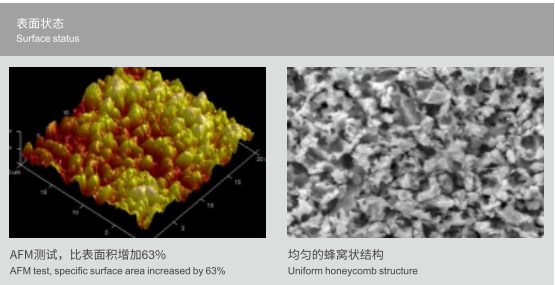 形成均勻的蜂窩狀結構,比表面積可增大60%以上;